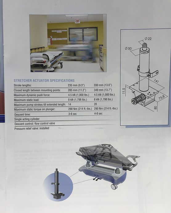 Hidrolik Silindir Aktüatörü Hidrolik Sedye Arabası Sedye için hidrolik pompa